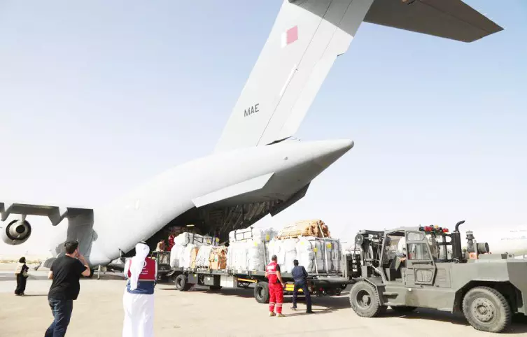 ഞായറാഴ്ച ഖത്തരി വ്യോമസേനയുടെ അഞ്ചു വിമാനങ്ങളാണ് മരുന്നും ഭക്ഷ്യണവും ഉൾപ്പെടെ 144 ടൺ വസ്തുക്കളുമായി ഗസ്സയിലെത്തിയത്. 1000 ടെന്റുകൾ, അരിയും ധാന്യങ്ങളും ഉൾപ്പെടെ ഭക്ഷ്യവസ്തുക്കൾ, ആശുപത്രി ഉപകരണങ്ങൾ, ആംബുലൻസ് എന്നിവയാണ് പ്രധാനമായും വിമാനങ്ങളിൽ എത്തിച്ചത്. തിങ്കളാഴ്ച അൽ അരിഷിലെത്തിയ അഞ്ചു വിമാനങ്ങളിൽ 156 ടൺ വസ്തുക്കൾ എത്തിച്ചു. ഇതോടെ ഒക്ടോബർ ഏഴു മുതൽ 26 വിമാനങ്ങളിലായി 879 ടൺ ദുരിതാശ്വാസവസ്തുക്കൾ ഖത്തർ ഈജിപ്ത് വഴി ഗസ്സയിലെത്തിച്ചു.