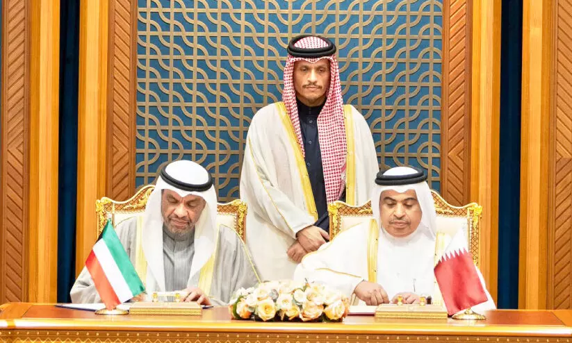 text_fieldsഖത്തർ -കുവൈത്ത് സുപ്രീം കമ്മിറ്റി യോഗത്തിൽ പ്രധാനമന്ത്രിയുടെ സാന്നിധ്യത്തിൽ കരാറിൽ ഒപ്പുവെക്കുന്നു