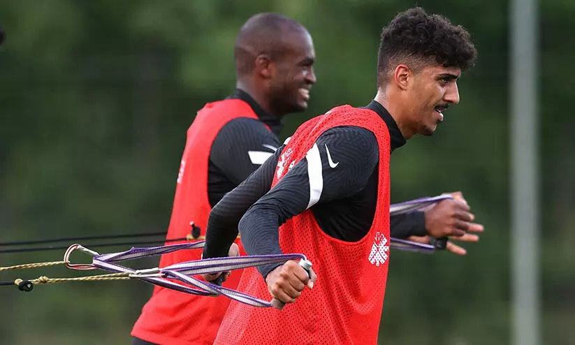 ഖത്തർ ഫുട്ബാൾ ടീം അംഗങ്ങൾ പരിശീലനത്തിൽ