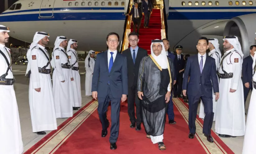 ഹമദ് അന്താരാഷ്ട്ര വിമാനത്താവളത്തിൽ എത്തിയ ചൈനീസ് വൈസ് പ്രസിഡന്റിന് നൽകിയ