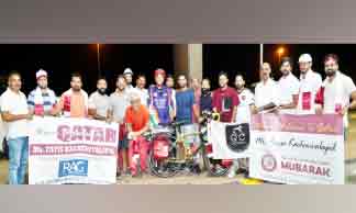 ദോഹ: കേരളം മുതൽ ലണ്ടൻ വരെ 450 ദിവസം കൊണ്ട് രണ്ട് ഭൂഖണ്ഡങ്ങളിലൂടെ യാത്രചെയ്യുന്ന സൈക്കിൾ യാത്രികൻ ഫായിസ് അഷ്റഫ് അലിക്ക് ഖത്തർ-സൗദി അതിർത്തിയിൽ സ്വീകരണം നൽകി. ഖത്തർ ഇന്ത്യൻ സൈക്ലിങ് കമ്യൂണിറ്റി ക്യൂ ക്രാങ്ക്സും മുബാറക് കഫെയും റാഗ് ഗ്ലോബൽ ബിസിനസ് ഹബ്ബും ഫ്ലയർ ഫോട്ടോസും ചേർന്നാണ് സ്വീകരിച്ചത്.