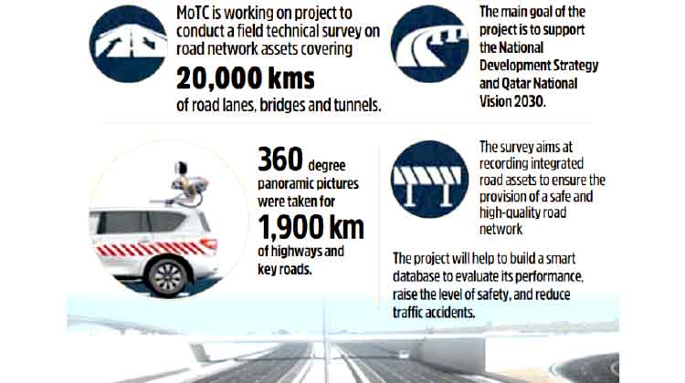 1900 കിലോമീറ്റർ നീളത്തിൽ ഹൈവേകൾക്കും പ്രധാന റോഡുകൾക്കുമായി 360 ഡിഗ്രി പനോരമിക് ചിത്രങ്ങൾ സർവേയുടെ ഭാഗമായി എടുത്തിട്ടുണ്ട്. കൂടാതെ, റോംഡാസ് സാങ്കേതികവിദ്യ ഉപയോഗിച്ച് 1000 കിലോമീറ്റർ റോഡുകളുടെ ത്രിമാന ചിത്രങ്ങൾ പകർത്തിയതായും മന്ത്രാലയം വ്യക്തമാക്കി. പദ്ധതി പ്രകാരം പ്രാദേശിക റോഡുകൾ കൂടുതൽ ഗുണനിലവാരമുയർത്തി മെച്ചപ്പെടുത്താനുള്ള പ്രത്യേക പദ്ധതി തയാറാക്കി പൊതുമരാമത്ത് അതോറിറ്റി (അശ്ഗാൽ)ക്ക് സമർപ്പിച്ചിട്ടുണ്ട്.