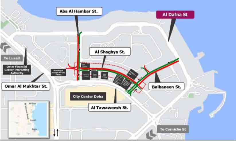 തൊഴില് മന്ത്രാലയം, സാമൂഹിക വികസന, കുടുംബ മന്ത്രാലയം, ഗതാഗത മന്ത്രാലയം, മുനിസിപ്പാലിറ്റി മന്ത്രാലയം തുടങ്ങിയ കേന്ദ്രങ്ങളിലേക്ക് ബല്ഹാംബര് സ്ട്രീറ്റില്നിന്ന് അല് ഷാഗിയ സ്ട്രീറ്റിലേക്കു വരുന്നവര്ക്ക് സമാന്തരമായ ബാല്ഹനിന് സ്ട്രീറ്റ് ഉപയോഗിക്കാമെന്ന് അശ്ഗാല് അറിയിച്ചു.