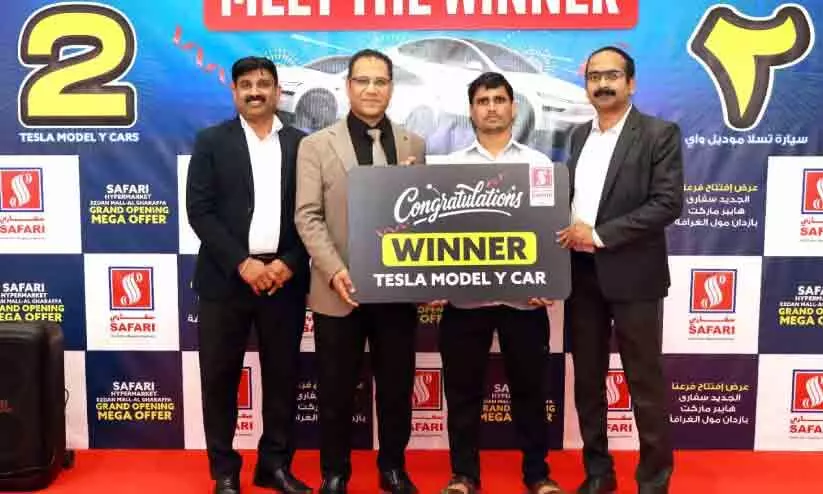 text_fieldsദോഹ: പ്രമുഖ ഹൈപ്പര്മാര്ക്കറ്റ് ശൃംഖലയായ സഫാരിയുടെ എസ്ദാന് മാളിലെ പുതിയ ഔട്ട്ലറ്റിന്റെ ഉദ്ഘാടത്തിനോടനുബന്ധിച്ച് മാള് സന്ദര്ശിക്കുന്നവര്ക്ക് ഒരു പര്ച്ചേസും കൂടാതെ കൂപ്പണ് നറുക്കെടുപ്പിലൂടെ ടെസ് ല കാറുകള് സമ്മാനമായി ലഭിക്കുന്ന വിസിറ്റ് ആൻഡ് വിന് പ്രമോഷൻ നറുക്കെടുപ്പ് നടന്നു. ചടങ്ങില് ആദ്യ നറുക്കെടുപ്പ് ലഭിച്ച എം.ഡി. ഫിറോസ് സഹാബുദ്ദീന് അന്സാരിക്ക് ടെസ് ല കാര് സഫാരി മാനേജ്മെന്റ് പ്രതിനിധികള് ചേര്ന്ന് കൈമാറി.