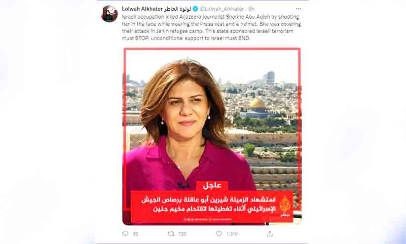 ശിറിൻ അബു ആഖില വധം; അപലപിച്ച് ഖത്തർ