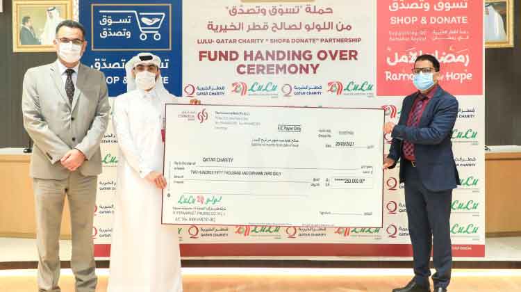 ഷോപ് ആൻഡ് ഡൊണേറ്റ് കാമ്പയിൻ: ഖത്തർ ചാരിറ്റിക്ക് ലുലു 2,50,000 റിയാൽ കൈമാറി