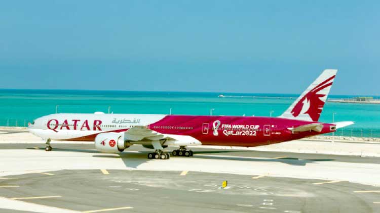 text_fields2022ലെ ലോകകപ്പ് ലോഗോ പതിച്ച ഖത്തർ എയർവേസ് വിമാനം