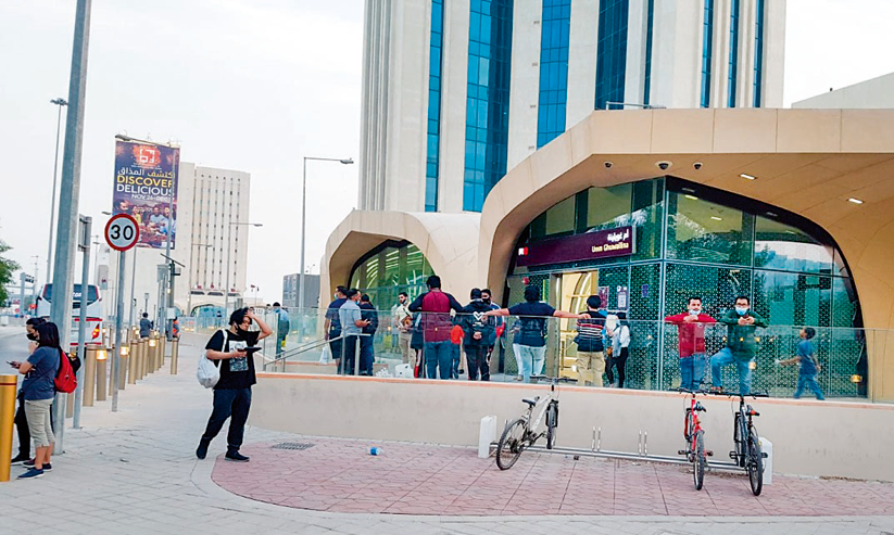 text_fieldsമെട്രോ സർവിസ് തടസ്സപ്പെട്ടപ്പോൾ സ്റ്റേഷന് പുറത്ത് കാത്തിരിക്കുന്ന യാത്രക്കാർ *ചിത്രം കടപ്പാട്: ദി പെനിൻസുല