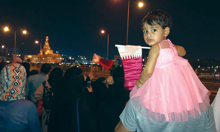 തുടർന്ന് കാർ മാർഗം പുറപ്പെട്ട അമീറിനും സംഘത്തിനും വഴി നീളെ വലിയ സ്വീകരണമാണ് ലഭിച്ചത്. കോർണിഷിൽ ഉച്ച മുതൽ തന്നെ സ്ത്രീകളും കുട്ടികളുമടങ്ങിയ സ്വദേശികളും വിദേശികളും അമീറിനെ വരവേൽക്കാൻ എത്തിത്തുടങ്ങിയിരുന്നു. ഖത്തർ പതാകയും അമീറിെൻറ ‘തമീം അൽമജ്ദ്’ ചിത്രങ്ങളുമായാണ് ജനങ്ങൾ അദ്ദേഹത്തെ സ്വീകരിക്കാൻ കോർണിഷിൽ അണിനിരന്നത്. ഇസ്ലാമിക് ആർട്ട് മ്യൂസിയം പിന്നിട്ടതിന് ശേഷം റോഡിന് വശങ്ങളിലായി തിങ്ങിനിറഞ്ഞ ജനമധ്യത്തിലേക്ക് അമീർ ഇറങ്ങിച്ചെന്നത് ജനങ്ങളെ ആവേശഭരിതരാക്കി. ‘കുല്ലുനാ തമീം, കുല്ലുനാ ഖത്തർ, തമീം അൽമജ്ദ്’ തുടങ്ങിയ മുദ്രാവാക്യങ്ങൾ ഉയർന്ന് പൊങ്ങി. അമീറിനെ ഒന്ന് കാണാനും ഹസ്തദാനം ചെയ്യാനും ജനങ്ങൾ തിരക്ക് കൂട്ടി. ഏതാനും നിമിഷം ജനങ്ങൾക്കിടയിൽ ചെലവഴിച്ച അമീർ വാഹനത്തിലേക്ക് കയറി മുേമ്പാട്ട് നീങ്ങി. അമീറിെൻറ ജേഷ്ഠനും പ്രത്യേക പ്രതിനിധിയുമായ ശൈഖ് ജാസിം ബിൻ ഹമദ് ആൽഥാനിയാണ് അമീറിനെയും വഹിച്ചുള്ള വാഹനം ഓടിച്ചത്.