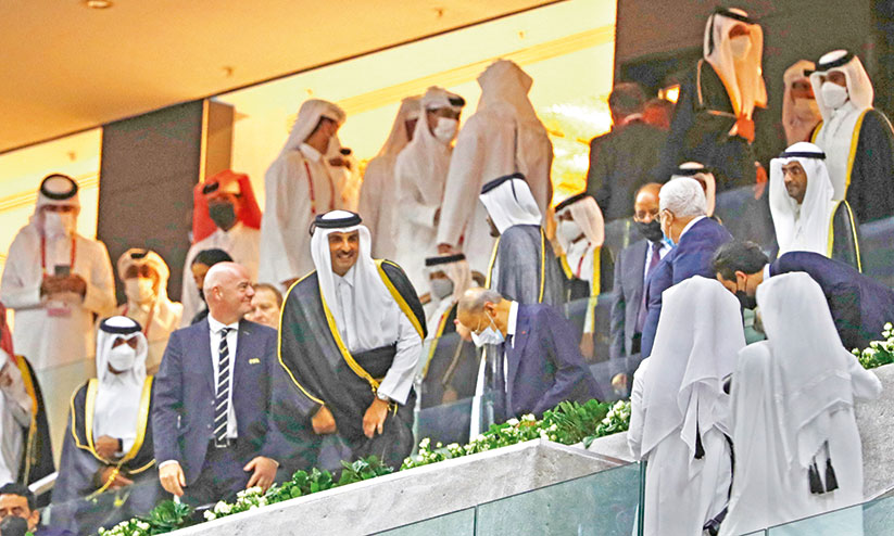 കുവൈത്ത് ഉപ പ്രധാനമന്ത്രി ശൈഖ് ഹമദ് ജാബിർ അൽ അലി അൽസബാഹ്, ജി.സി.സി സെക്രട്ടറി ജനറൽ ഡോ. നായിഫ് അൽ ഫലാഹ് മുബാറക് അൽ ഹജ്റഫ്, ജിബൂട്ടി പ്രസിഡൻറ് ഇസ്മായിൽ ഉമർ ഗുലേ, ലെബനാൻ പ്രസിഡൻറ് മൈകൽ ഓൻ, ജോർഡൻ കിരീടാവകാശി അൽ ഹുസൈൻ ബിൻ അബ്ദുല്ല രണ്ടാമൻ, സോമാലിയ പ്രസിഡൻറ് മുഹമ്മദ് അബ്ദുല്ലായി ഫർമാജോ, യെമൻ വൈസ്പ്രസിഡൻറ് ലഫ്. ജനറൽ അലി മുഹ്സിൻ അൽ അഹ്മർ, ഫലസ്തീൻ പ്രസിഡൻറ് മഹ്മൂദ് അബ്ബാസ്,സൗദി ഗവർണർ നായിഫ് ബിൻ അബ്ദുൽ അസീസ് അൽ സൗദ് തുടങ്ങിയ രാഷ്ട്രനേതാക്കളുടെ സാന്നിധ്യത്തിലായിരുന്നു പ്രൗഢഗംഭീരമായ ഉദ്ഘാടന ചടങ്ങ്. ലോകകപ്പിനായി ഖത്തർ ഒരുക്കിയ മറ്റൊരു വേദിയായ റാസ് അബൂഅബൂദിലെ സ്റ്റേഡിയം 974 രാത്രി 10ന് നടന്ന മത്സരത്തോടെ ലോകത്തിന് സമർപ്പിച്ചു.