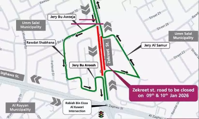 തുടർന്ന് ജെറി ബു അരീഷ് സ്ട്രീറ്റ് വഴി ലക്ഷ്യസ്ഥാനത്ത് എത്തിച്ചേരാം. യാത്രക്കാർ ഗതാഗത സൂചനകൾ പാലിക്കണമെന്നും അഷ്ഗാൽ ആവശ്യപ്പെട്ടു.