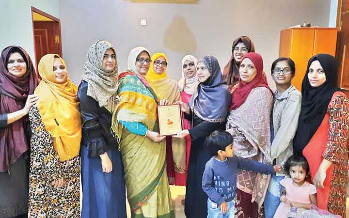 ഷാഹിദ ജലീലിന് നടുമുറ്റം ഖത്തർ നൽകിയ യാത്രയയപ്പിൽ ഉപഹാരം നൽകുന്നു