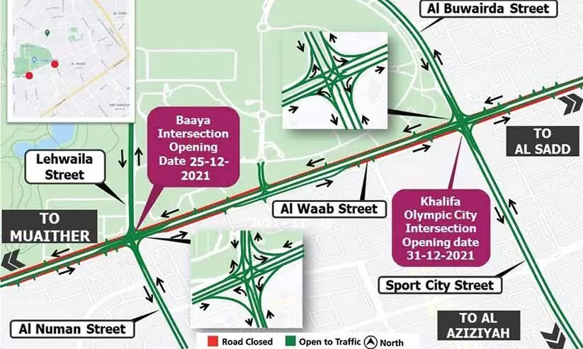 അൽവാബ് സ്ട്രീറ്റിൽ രണ്ട് ഇൻറർസെക്ഷനുകൾ തുറക്കും; വക്റയിൽ താൽകാലിക അടവ്