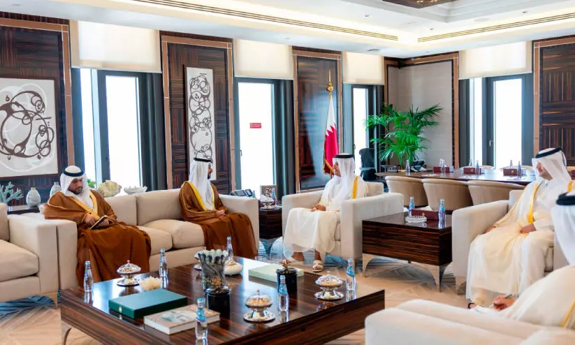 text_fieldsയു.എ.ഇ അംബാസഡർക്ക് പ്രധാനമന്ത്രിയും വിദേശകാര്യ മന്ത്രിയുമായ ശൈഖ് മുഹമ്മദ് ബിൻ അബ്ദുറഹ്മാൻ ബിൻ ജാസിം ആൽഥാനി നൽകിയ യാത്രയയപ്പിൽനിന്ന്