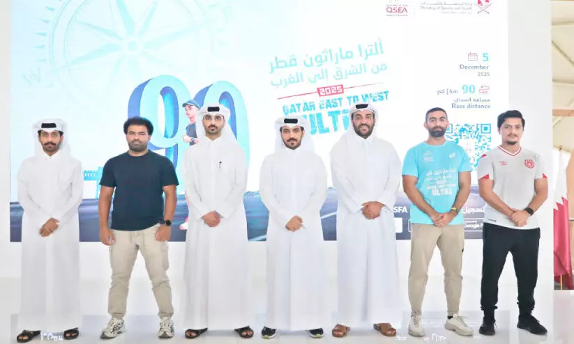 text_fields90 കി.മീ ദൈർഘ്യമുള്ള ഖത്തർ ഈസ്റ്റ് ടു വെസ്റ്റ് അൾട്രാമാരത്തൺ പ്രഖ്യാപനത്തിൽനിന്ന്
