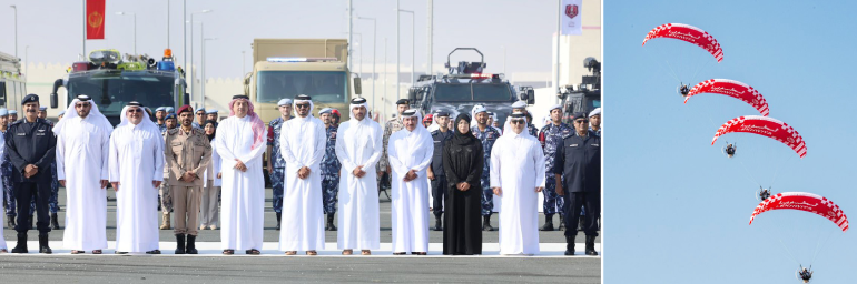 text_fieldsവതൻ അഭ്യാസത്തിന്റെ സമാപനത്തിൽ ഉപപ്രധാനമന്ത്രി ഡോ. ഖാലിദ് ബിൻ മുഹമ്മദ് അൽ അതിയ്യ, ആഭ്യന്തരമന്ത്രി ശൈഖ് ഖലീഫ ബിൻ ഹമദ് ആൽഥാനി എന്നിവർ ഉൾപ്പെടെ പ്രമുഖർ പങ്കെടുക്കുന്നു, പാരാഗ്ലൈഡർമാരുടെ പ്രദർശനം