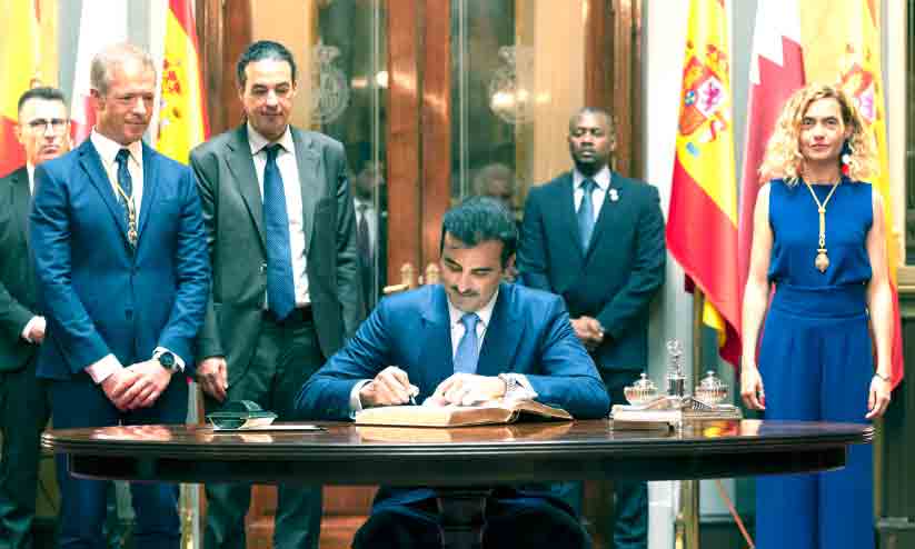 ദോഹ: ഔദ്യോഗിക സന്ദർശനത്തിന്റെ ഭാഗമായി സ്പെയിനിലെത്തിയ അമീർ ശൈഖ് തമീം ബിൻ ഹമദ് ആൽഥാനിക്ക് തലസ്ഥാന നഗരമായ മഡ്രിഡിലെ റോയൽ പാലസിൽ ഊഷ്മള സ്വീകരണം.
