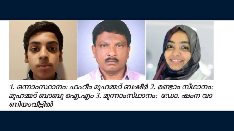 കെ.പി. മൈമൂന, ഹസ്രത്ത് ഖദീജ, അബ്ദുൽ കാദർ, നസ്രീൻ ശറഫുദ്ദീൻ എന്നിവർ പ്രോത്സാഹന സമ്മാനത്തിന് അർഹരായി. പരീക്ഷയിൽ സോണിൽനിന്ന് 250 ഓളം പേർ പങ്കെടുത്തു. പ്രസിഡൻറ് ബഷീർ അഹ്മദ് അധ്യക്ഷത വഹിച്ചു. ഫക്രുദ്ദീൻ, അബ്ദുൽ സലാം , നബീൽ , സിദ്ദീഖ് എന്നിവർ പരിപാടിക്ക് നേതൃത്വം നൽകി.