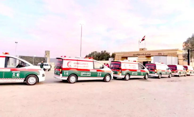 സൗദിയുടെ 14 ആംബുലൻസുകൾ ഗസ്സയിലെത്തി