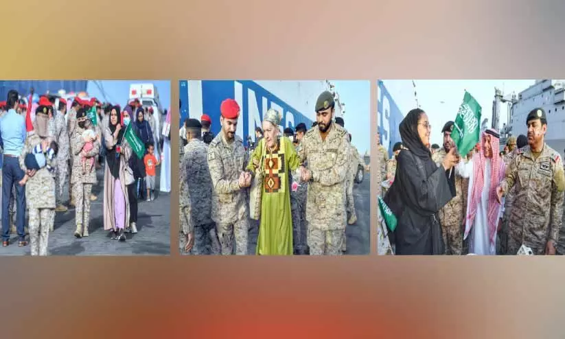 text_fieldsസൗദി സുരക്ഷ സേനയുടെ ‘അമാന’ കപ്പലിൽ ജിദ്ദയിലെത്തിച്ചവരെ സൗദി അധികൃതർ വരവേറ്റപ്പോൾ