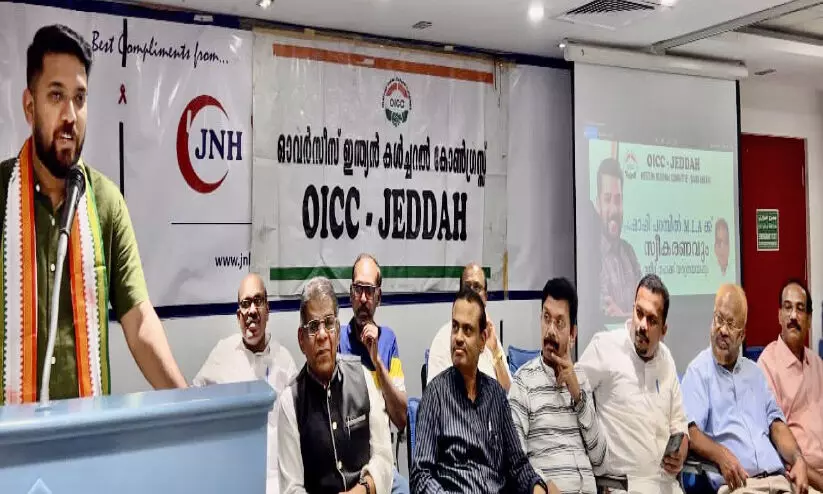 text_fieldsജിദ്ദ ഒ.ഐ.സി.സി റീജനൽ കമ്മിറ്റി നൽകിയ സ്വീകരണത്തിൽ യൂത്ത് കോൺഗ്രസ് സംസ്ഥാന പ്രസിഡന്റ് ഷാഫി പറമ്പിൽ സംസാരിക്കുന്നു