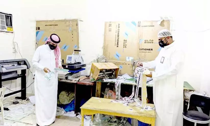 text_fieldsജിദ്ദ ബാഗ്ദാദിയയിൽ വ്യാജ വസ്ത്ര സ്റ്റിക്കർ നിർമാണ കേന്ദ്രം മുനിസിപ്പാലിറ്റി ഉദ്യോഗസ്ഥർ പിടികൂടിയപ്പോൾ
