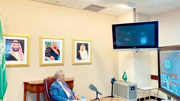 text_fieldsയു.എൻ. സെക്രട്ടറി ജനറൽ അേൻറാണിയോ ഗുെട്ടറസ് വിളിച്ച ഒാൺലൈൻ യോഗത്തിൽ സൗദി അംബാസഡർ അബ്ദുല്ല ബിൻ യഹ്യ അൽമുഅ്ലമി സംസാരിക്കുന്നു
