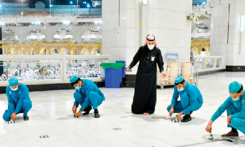 text_fieldsസാമൂഹിക അകലം നിർബന്ധമല്ലാതായതോടെ മസ്ജിദുൽ ഹറാമിൽ പതിച്ച സ്റ്റിക്കറുകൾ നീക്കം ചെയ്യുന്നു