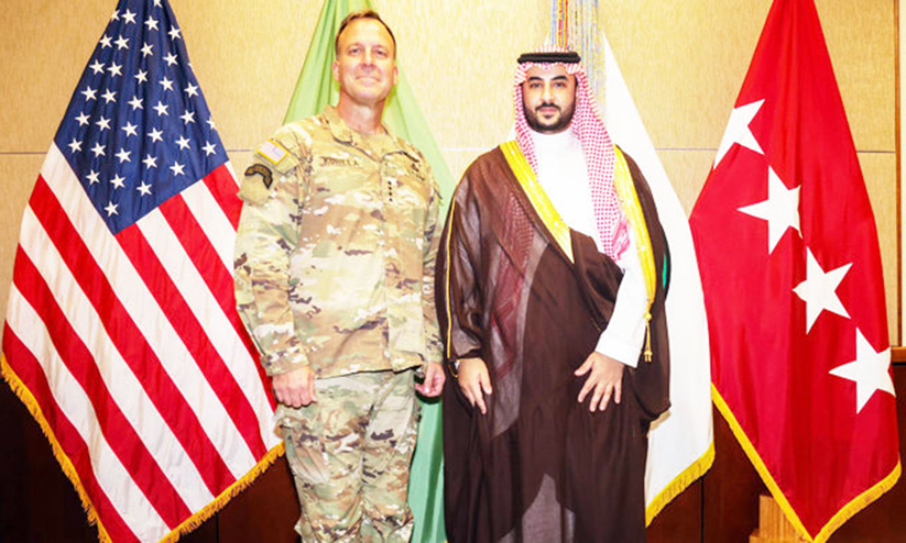 text_fieldsസൗദി ഡെപ്യൂട്ടി മന്ത്രി ഖാലിദ് ബിൻ സൽമാൻ രാജകുമാരൻ യു.എസ് സെൻട്രൽ കമാൻഡർ ജനറൽ മൈക്കൽ കുറില്ലയുമായി കൂടിക്കാഴ്ച നടത്തുന്നു