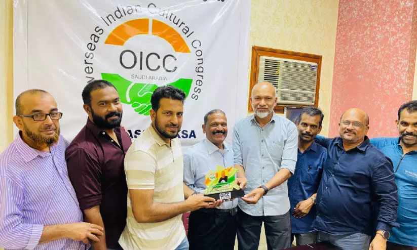 നാട്ടിലേക്ക് മടങ്ങുന്ന ശശികുമാർ കായംകുളത്തിന് ഒ.ഐ.സി.സി അൽഖസീം സെൻട്രൽ കമ്മിറ്റി യാത്രയയപ്പ് നൽകിയപ്പോൾ