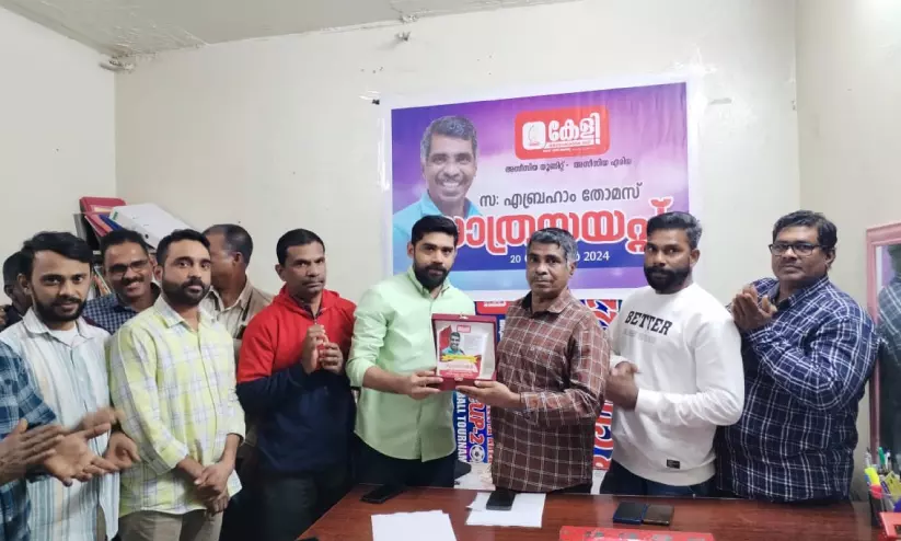 റിയാദ്: കേളി കലാസാംസ്കാരിക വേദി അസീസിയ ഏരിയ അസീസിയ യൂനിറ്റ് അംഗം എബ്രഹാം തോമസിന് യൂനിറ്റിന്റെ നേതൃത്വത്തിൽ യാത്രയയപ്പ് നൽകി. 34 വർഷത്തോളമായി റിയാദിലെ ഒരു സ്വകാര്യ കമ്പനിയിൽ ഫോർക് ലിഫ്റ്റ് ഓപറേറ്റർ, മെഷീൻ ഓപറേറ്റർ എന്നീ ജോലികൾ ചെയ്തുവരികയായിരുന്നു. പത്തനംതിട്ട കുറച്ചിമുട്ടം സ്വദേശിയാണ്.