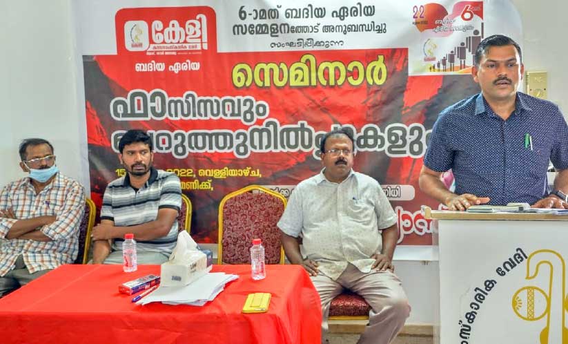 റിയാദ്: കേളി കലാസാംസ്കാരിക വേദി ബദീഅ ഏരിയ ആറാമത് സമ്മേളനത്തോടനുബന്ധിച്ച് 'ഫാഷിസവും ചെറുത്തുനിൽപുകളും' വിഷയത്തിൽ സെമിനാർ സംഘടിപ്പിച്ചു.