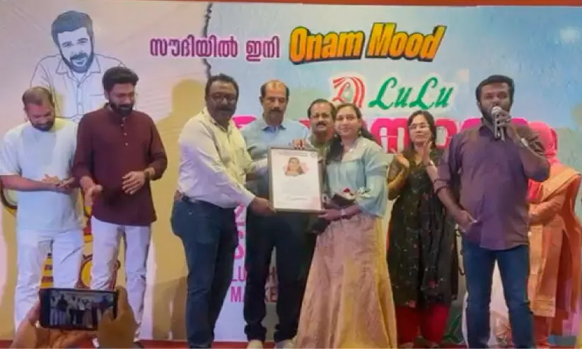 ഗിന്നസ് ജേതാവ് നീനു സാംസണെ ജുബൈൽ മലയാളി സമാജം ആദരിച്ചു