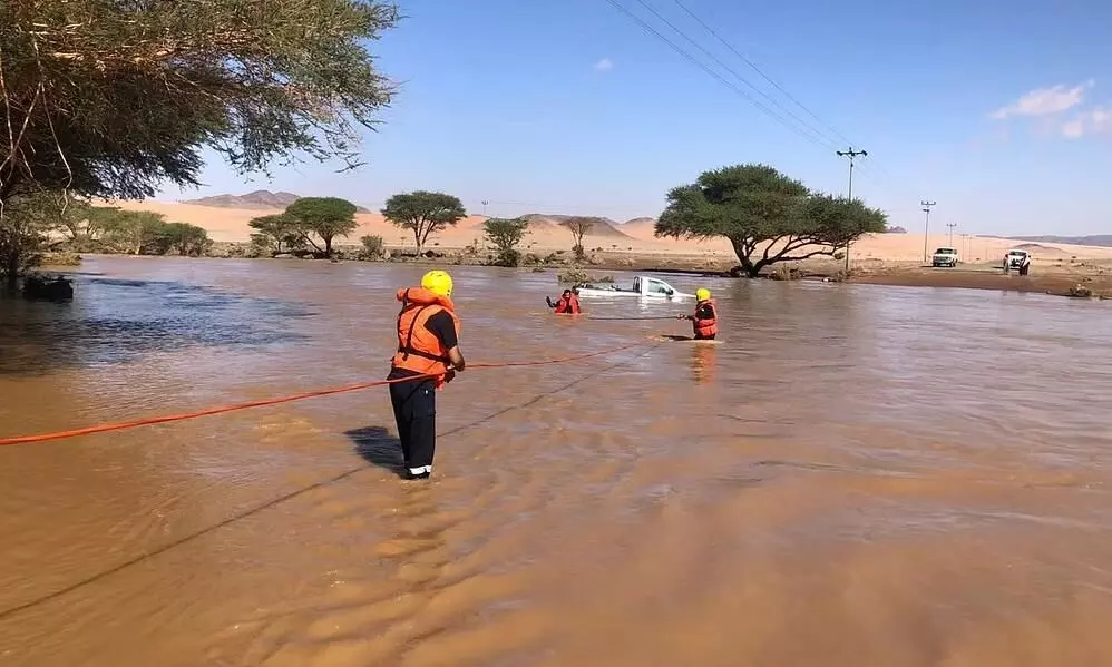 text_fieldsമദീന: മദീനയിൽ കനത്ത മഴ തുടരുന്നു. വെള്ളക്കെട്ടിൽപ്പെട്ട വാഹനത്തിനുള്ളിൽ കുടുങ്ങിയ നാലുപേരെ സിവിൽ ഡിഫൻസ് രക്ഷപ്പെടുത്തി. മൂന്ന് പേരെ വാദി ബൈദാഅ്ൽ നിന്നും ഒരാളെ ഖൈബർ താഴ്വരയിൽ നിന്നുമാണ് രക്ഷപ്പെടുത്തിയത്. മേഖലയുടെ മിക്ക ഭാഗങ്ങളിലും രണ്ട് ദിവസമായി സമാന്യം നല്ല മഴയാണുണ്ടായത്.