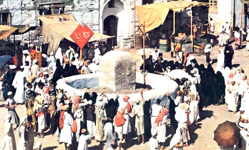 text_fields1953ലെ ഹജ്ജ് കാലത്ത് ജംറയിൽ പിശാചിനെതിരെ പ്രതീകാത്മക കല്ലെറിയൽ കർമം നിർവഹിക്കുന്ന ഹാജിമാർ
