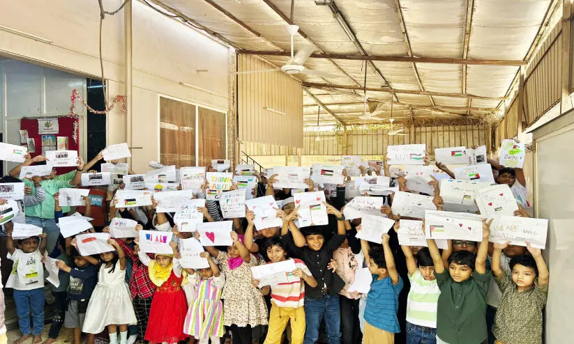 text_fieldsജിദ്ദ ഇമാം ബുഖാരി മദ്റസ കുട്ടികൾ പ്ലക്കാർഡുകളേന്തി ഗസ്സയിലെ പോരാളികൾക്ക് ഐക്യദാർഢ്യം പ്രഖ്യാപിക്കുന്നു