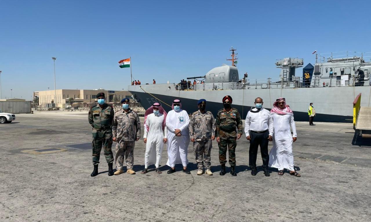 കോവിഡ്; പ്രതിരോധ മെഡിക്കൽ ഉപകരണങ്ങൾ ശേഖരിക്കാൻ ഇന്ത്യൻ യുദ്ധക്കപ്പൽ ദമ്മാം തീരത്ത്