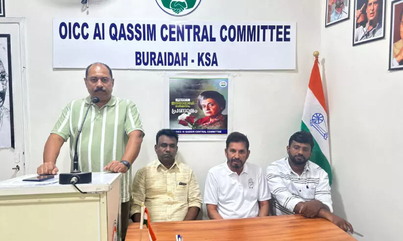 ബുറൈദ: ഒ.ഐ.സി.സി അൽഖസീം സെൻട്രൽ കമ്മിറ്റി ഇന്ദിരാഗാന്ധി രക്തസാക്ഷി ദിനം ആചരിച്ചു. പ്രിയദർശിനി മെമ്മോറിയൽ ഹാളിൽ നടന്ന അനുസ്മരണ യോഗത്തിൽ പ്രസിഡൻറ് അബദുറഹ്മാൻ തിരുർ അധ്യക്ഷത വഹിച്ചു. ജനറൽ സെക്രട്ടറി പ്രമോദ് കുര്യൻ കോട്ടയം അനുസ്മരണ പ്രഭാഷണം നടത്തി.