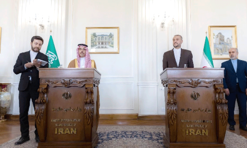 text_fieldsസൗദി വിദേശകാര്യ മന്ത്രി അമീർ ഫൈസൽ ബിൻ ഫർഹാൻ, ഇറാൻ വിദേശകാര്യമന്ത്രി ഹുസൈൻ അമീർ അബ്ദുല്ലാഹി എന്നിവർ സംയുക്ത വാർത്തസമ്മേളനത്തിൽ