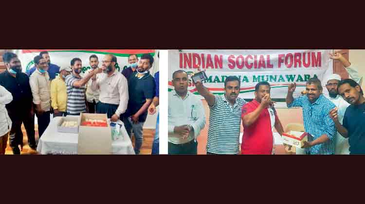 ജിദ്ദ: തദ്ദേശ തെരഞ്ഞെടുപ്പിൽ സംസ്ഥാനത്ത് എസ്.ഡി.പി.ഐ നേടിയ വിജയം ഇന്ത്യൻ സോഷ്യൽ ഫോറം (ഐ.എസ്.എഫ്) ജിദ്ദ കേരള സ്റ്റേറ്റ് കമ്മിറ്റിയും വിവിധ ബ്ലോക്ക് കമ്മിറ്റികളും ആഘോഷിച്ചു.