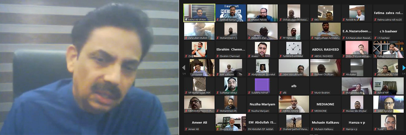 ജിദ്ദ: ദേശസുരക്ഷയുടെ പേരില് കേന്ദ്ര സര്ക്കാര് മീഡിയവൺ ചാനല് സംപ്രേഷണം ചെയ്യുന്നത് നിരോധിച്ചതിനെതിരെ മുഴുവൻ മതേതര, ജനാധിപത്യ വിശ്വാസികളുടെയും യോജിച്ച മുന്നേറ്റം അനിവാര്യമാണെന്ന് ജിദ്ദ പൗരസമൂഹം ഐക്യഖണ്ഡേന അഭിപ്രായപ്പെട്ടു. വിവിധ മത രാഷ്ട്രീയ സാംസ്കാരിക സംഘടന പ്രതിനിധികൾ പങ്കെടുത്ത ഓൺലൈൻ മീഡിയവൺ ഐക്യദാർഢ്യസംഗമം വ്യവസായിയും ജിദ്ദ നാഷനൽ ആശുപത്രി മാനേജിങ് ഡയറക്ടറുമായ വി.പി മുഹമ്മദലി ഉദ്ഘാടനം ചെയ്തു. മീഡിയവണ് ചാനല് സംപ്രേഷണം തുടങ്ങിയ ആദ്യദിനം മുതല് എല്ലാവിധ പിന്തുണയും നല്കിയ വ്യക്തിയാണ് താനെന്നും ഏത് പ്രതിസന്ധിയിലും ചാനലിനോടൊപ്പം നിലയുറപ്പിക്കുമെന്നും അദ്ദേഹം പറഞ്ഞു. എല്ലാവരും ഒത്തൊരുമിച്ച് നിയമപോരാട്ടത്തിലൂടെ ചാനലിന് അനുമതി ലഭ്യമാക്കണമെന്നും അദ്ദേഹം അഭിപ്രായപ്പെട്ടു.
