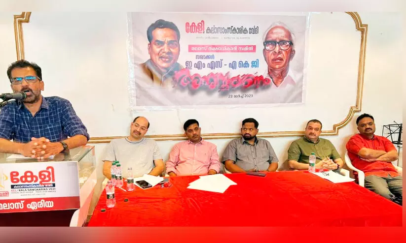 റിയാദ്: കേളി കലാസാംസ്കാരിക വേദി മലസ് ഏരിയ രക്ഷാധികാരി കമ്മിറ്റിയുടെ നേതൃത്വത്തിൽ എ.കെ.ജി-ഇ.എം.എസ് അനുസ്മരണം സംഘടിപ്പിച്ചു. ഏരിയ രക്ഷാധികാരി കമ്മിറ്റി കൺവീനർ സുനിൽ കുമാർ അനുസ്മരണ യോഗത്തിൽ അധ്യക്ഷത വഹിച്ചു. രക്ഷാധികാരി കമ്മിറ്റി അംഗം ഉമർ വട്ടപ്പറമ്പിൽ ആമുഖ പ്രഭാഷണം നടത്തി. മുഖ്യരക്ഷാധികാരി കമ്മിറ്റി അംഗം ഫിറോസ് തയ്യിൽ മുഖ്യ അനുസ്മരണ പ്രഭാഷണം നടത്തി.