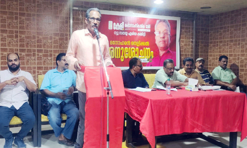 റിയാദ്: കേളി സാംസ്കാരിക വേദി ന്യൂ സനയ്യ ഏരിയ രക്ഷാധികാരി കമ്മിറ്റി കൺവീനർ മനോഹരൻ നെല്ലിക്കലിന്റെ വിയോഗത്തിൽ അനുശോചന യോഗം സംഘടിപ്പിച്ചു. ന്യൂ സനയ്യയിലെ ദുബൈ മാർക്കറ്റ് ഒയാസിസ് ഹാളിൽ നടന്ന യോഗത്തിൽ ഏരിയ സാംസ്കാരിക കമ്മിറ്റി അംഗം രാജേഷ് ഓണാക്കുന്ന് അനുശോചന കുറിപ്പ് അവതരിപ്പിച്ചു. ഏരിയ പ്രസിഡന്റ് നിസാർ മണ്ണഞ്ചേരി അധ്യക്ഷത വഹിച്ചു. സുരേഷ് കണ്ണപുരം, ഹുസൈൻ മണക്കാട്, ബൈജു ബാലചന്ദ്രൻ, തോമസ് ജോയി, താജുദ്ദീൻ, നാസർ, ജയപ്രകാശ്, അബ്ദുൽ കലാം, ഗിരീഷ്, അബ്ബാസ്, കരുണാകരൻ മണ്ണടി, സജീഷ്, ബേബി ചന്ദ്രകുമാർ, മധു, ഗോപി, രാജേഷ്, സതീഷ് കുമാർ, എസ്. ഷിബു, വിവിധ യൂനിറ്റ് കമ്മിറ്റി അംഗങ്ങൾ എന്നിവർ സംസാരിച്ചു. ഏരിയ സെക്രട്ടറി ഷിബു തോമസ് സ്വാഗതം പറഞ്ഞു.