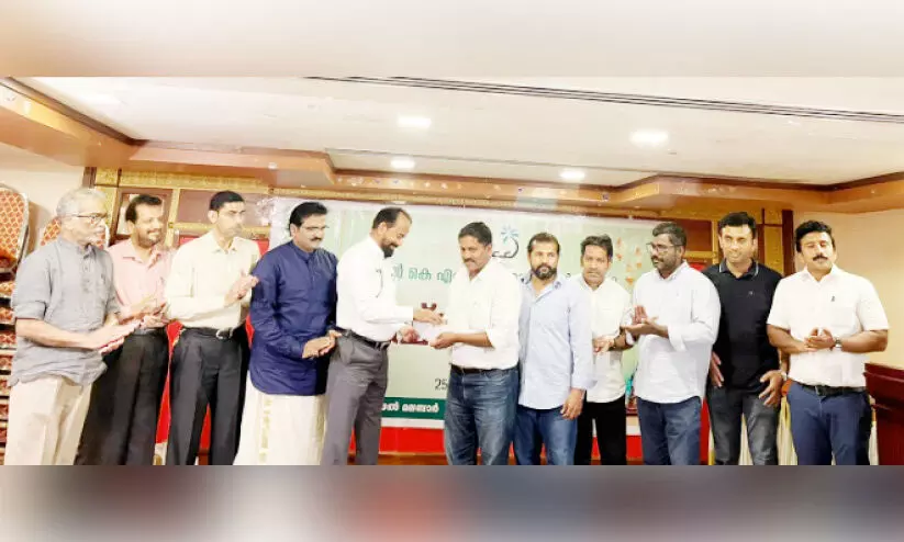 സി.എച്ച് റിലീഫ് പ്രവർത്തനങ്ങളുടെ ഉദ്ഘാടനം ടി.സി. ഷാജി, ഉസ്മാൻ ഒട്ടുമ്മലിന് സംഭാവന നൽകി നിർവഹിക്കുന്നു