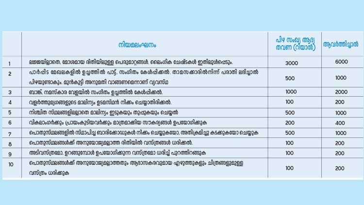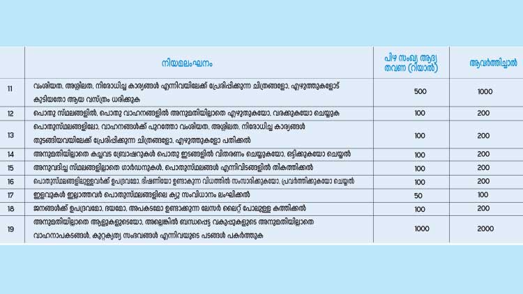 date_range 4 Nov 2019 11:06 AM ISTപൊതു പെരുമാറ്റച്ചട്ടം: നിയമം ലംഘിച്ചാൽ 50 മുതൽ 6000 റിയാൽ വരെ പിഴ