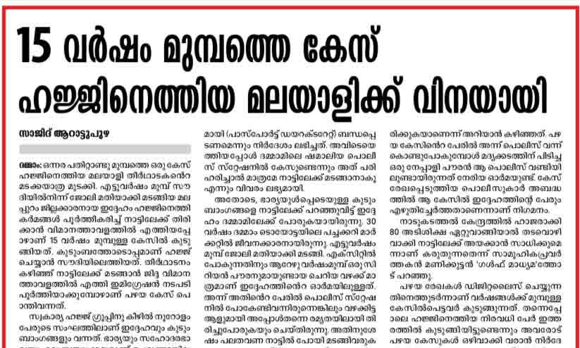 കുരുക്കഴിഞ്ഞു; 15 വർഷം മുമ്പത്തെ കേസിൽനിന്ന് രക്ഷപ്പെട്ട മലയാളി ഹാജിക്ക് ഇനി നാടണയാം
