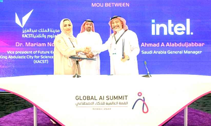 text_fieldsഇന്റൽ സൗദി ഡയറക്ടർ അബ്ദുൽ ജബ്ബാറും കിങ് അബ്ദുല്ല സിറ്റി ഫോർ സയൻസ് ആൻഡ് ടെക്നോളജി ഫ്യൂച്ചർ ഇക്കോണമി വൈസ് പ്രസിഡന്റ് ഡോ. മർയം നൂഹും ധാരണപത്രം കൈമാറുന്നു. കിങ് അബ്ദുല്ല സയൻസ് സിറ്റി പ്രസിഡന്റ് ഡോ. മുനീർ അൽ ദുസൂഖി സമീപം
