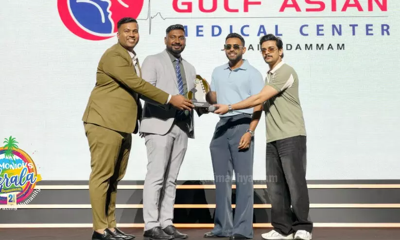 text_fieldsഗൾഫ് മാധ്യമം ഹാർമോണിയസ് കേരള വേദിയിൽ ഗൾഫ് ഏഷ്യൻ മെഡിക്കൽ സെൻറർ ബിസിനസ് ഡെവലപ്മെൻറ് മാനേജർ മുഹമ്മദ് അനസ്, ഓപറേഷൻ മാനേജർ ജുനൈദ് എന്നിവർക്ക് സിനിമാതാരം അർജുൻ അശോകനും നടനും ഡാൻസറുമായ റംസാൻ മുഹമ്മദും ചേർന്ന് ഫലകം സമ്മാനിക്കുന്നു
