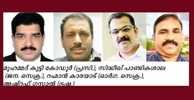 text_fieldsദമ്മാം: മുസ്ലിം ലീഗ് സംസ്ഥാന കമ്മിറ്റിയുടെ ആഹ്വാന പ്രകാരം സൗദി കെ.എം.സി.സി ദേശീയ അംഗത്വ കാമ്പയിന്റെ ഭാഗമായി കിഴക്കൻ പ്രവിശ്യ കെ.എം.സി.സിക്ക് പുതിയ കമ്മിറ്റി നിലവിൽ വന്നു. മുഹമ്മദ് കുട്ടി കോഡൂർ (പ്രസി.), സിദ്ധീഖ് പാണ്ടികശാല (ജന. സെക്ര.), റഹ്മാൻ കാരയാട് (ഓർഗ. സെക്ര.), അഷ്റഫ് ഗസാൽ (ട്രഷ.), സുലൈമാൻ കൂലേരി സീനിയർ (വൈ. പ്രസി.), ഖാദർ വാണിയമ്പലം, അമീർ അലി കൊയിലാണ്ടി, എ.കെ.എം. നൗഷാദ് തിരുവനന്തപുരം, അബ്ദുൽ മജീദ് കൊടുവള്ളി, മുഹമ്മദ് കുട്ടി കരിങ്കപ്പാറ, സലീം പാണമ്പ്ര (വൈ. പ്രസി.), സിറാജ് ആലുവ, ഒ.പി. ഹബീബ് ബാലുശ്ശേരി, എ.ആർ. സലാം ആലപ്പുഴ, ടി.ടി. കരീം വേങ്ങര, ആഷിഖ് തൊടിയൂർ, സുലൈമാൻ വാഴക്കാട്, സൈദലവി പരപ്പനങ്ങാടി (സെക്ര.) എന്നിവരാണ് പുതിയ ഭാരവാഹികൾ. പ്രവിശ്യയിലെ എട്ട് കേന്ദ്രകമ്മിറ്റികൾ, 10 ജില്ല കമ്മിറ്റികൾ എന്നിവയിൽനിന്നും തെരഞ്ഞെടുക്കപ്പെട്ട 80തോളം വരുന്ന ജനറൽ കൗൺസിലിൽ നിന്നാണ് കമ്മിറ്റിയെ തെരഞ്ഞെടുത്തത്. സൗദി കെ.എം.സി.സി ട്രഷറർ കുഞ്ഞിമോൻ കാക്കിയ തെരഞ്ഞെടുപ്പ് നിയന്ത്രിച്ചു.