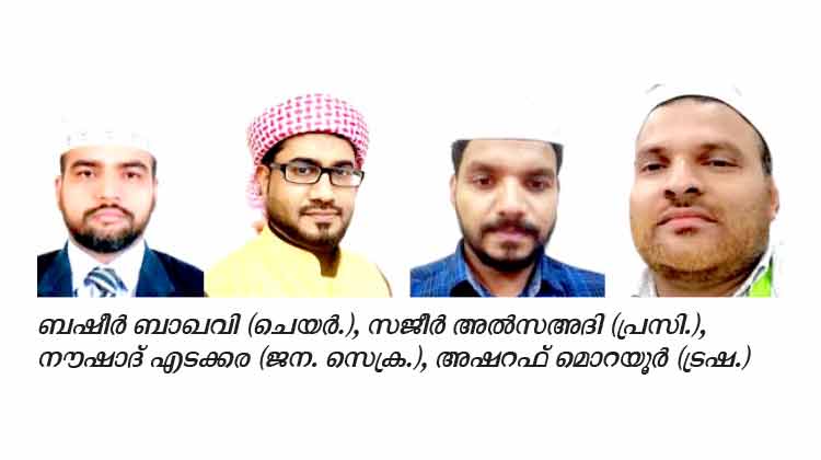 മുഹമ്മദ് പൂക്കോട്ടൂർ, മുസ്തഫ താമരശ്ശേരി (അഡ്വൈസറി ബോർഡ്), ബഷീർ ബാഖവി (ചെയർ.), സജീർ അൽഅസ്അദി (പ്രസി.), നൗഷാദ് എടക്കര (ജന. സെക്ര.), അഷ്റഫ് മൊറയൂർ (ട്രഷ.), ഖാദി മുഹമ്മദ്, മുസ്തഫ പൂക്കാടൻ (വൈ. ചെയർ.), മൊയ്തീൻ കുഞ്ഞി, സൈനുൽ ആബിദ് (വൈ. പ്രസി.), അമീർ അലി പരുതൂർ (വർക്കിങ് സെക്ര.), നിസാർ വേങ്ങര (ഓർഗ. സെക്ര.), ഷബാജ് ഷാജി, മുഹമ്മദ് കുട്ടി (ജോ. സെക്ര.) എന്നിവരാണ് പ്രധാന ഭാരവാഹികൾ. ഫഖ്റുദ്ദീൻ (ദഅ്വ ചെയർ.), യൂസഫ് അസ്ലമി (കൺ.), ശംസുദ്ദീൻ മനക്കടവൻ (റിലീഫ് ചെയർ.), ഷൗക്കത് അലി (കൺ.), ജസീൽ (വിഖായ ചെയർ.), ഇർഷാദ് (കൺ.), മൂസ അസ്അദി (സർഗലയം ചെയർ.), വി.ടി. മുഹമ്മദ് (കൺ.) എന്നിവരെ സബ് കമ്മിറ്റി ഭാരവാഹികളായും തെരഞ്ഞെടുത്തു.